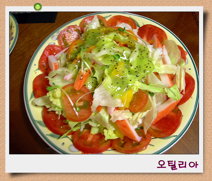 키위 소스와 오리엔탈 소스를 함께 뿌려냈는데