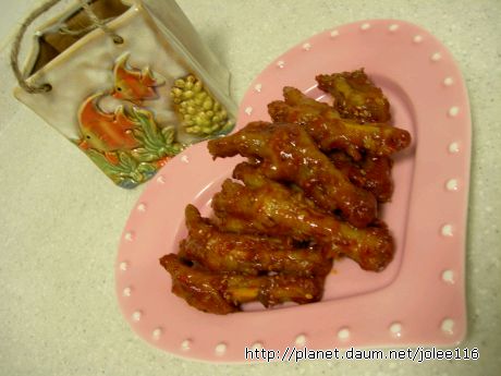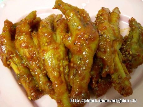 재료: 닭발300그램. 고추장2술.고추가루3술.간장3술.마늘1술.생강약간.
