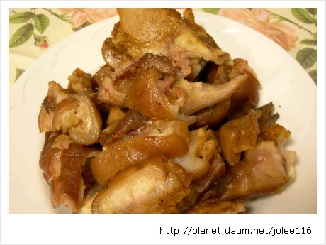재료 : 돼지족. 간장.정향.팔각.월계수잎.후추.양파.대파.생강.맛술 ( 설탕도 약간)