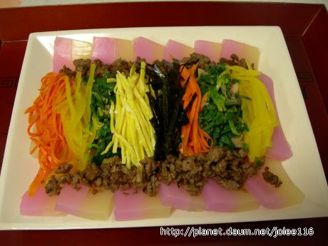 위에것은 내가 만든 칼라 청포묵인데 도토리묵도 괜찮습니다.