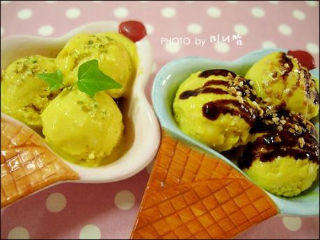 넓은 밀폐용기에 담아서 2~3시간에 한번씩 포크나 스쿠프로 살짝 살짝 긁어주면 한층 더 부드러운 단호박 아이스크림을 맛볼 수 있답니다